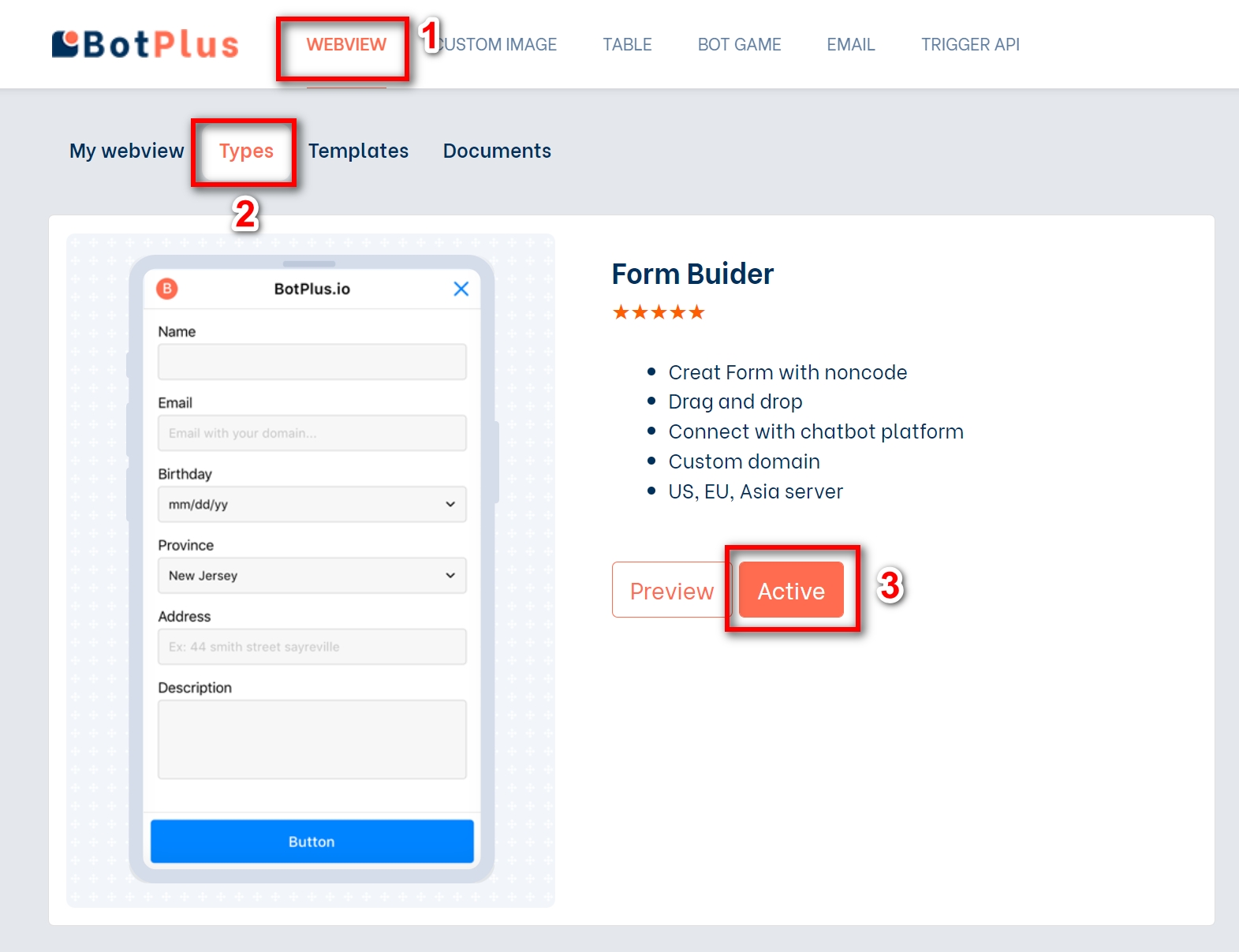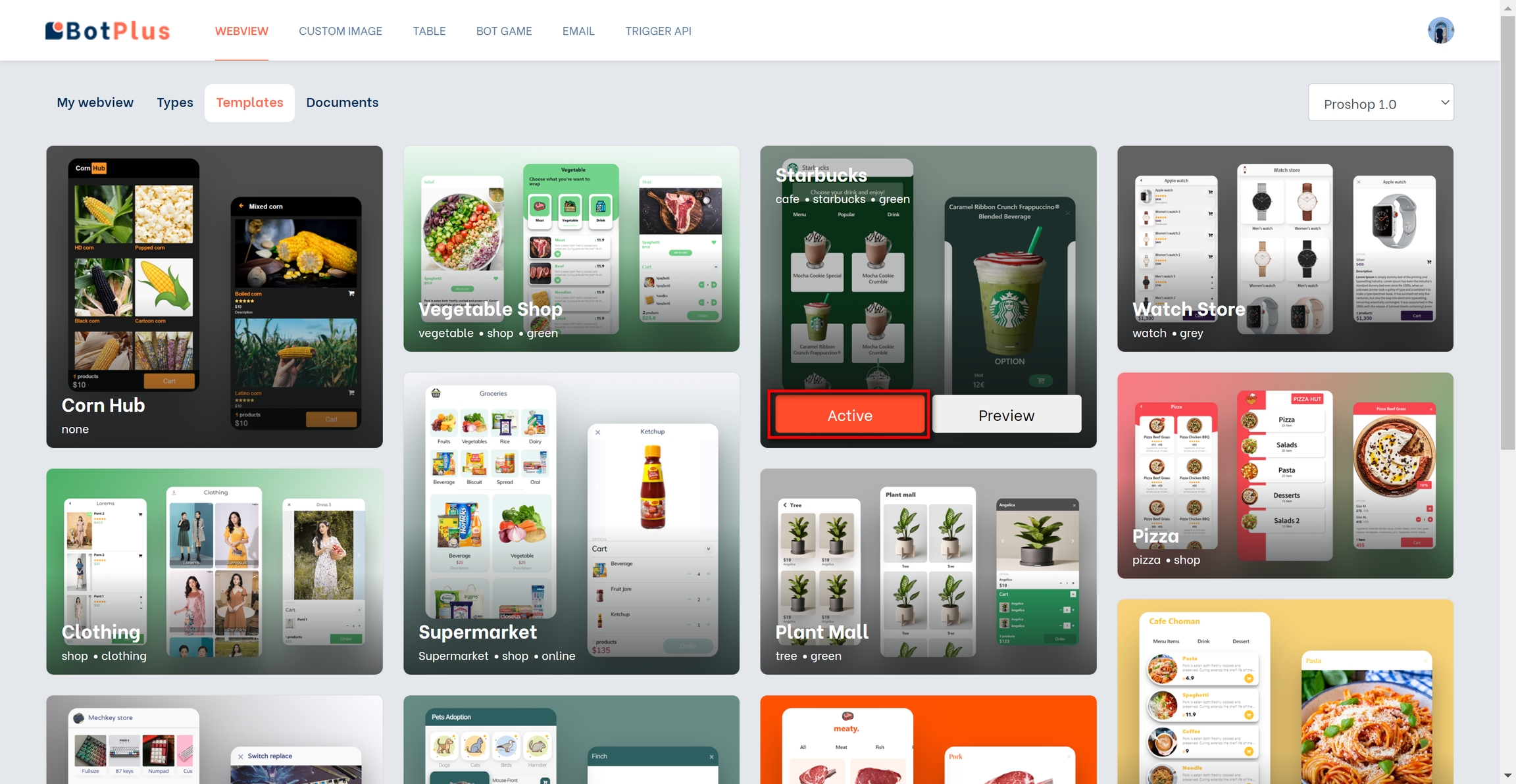There are also many nice templates for each webview for you to choose. Get one that suits your business most and click Active: