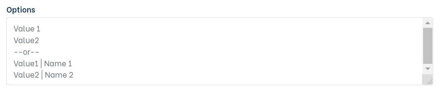 Each option has to be separated by a line break. There are two ways to declare an option: